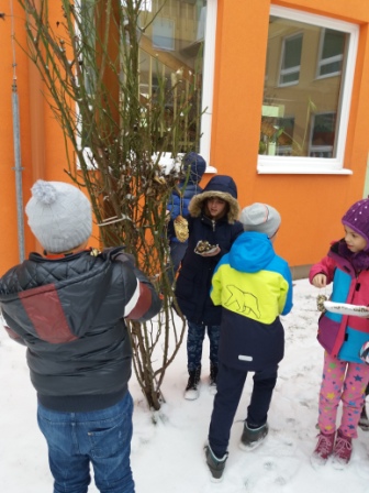 Udreli silné mrazy, nasnežilo. Okrem šantenia na snehu i ľade sme si spomenuli aj na naše operence. Tie teraz nemajú ľahký život. Na pracovnom vyučovaní sme pre nich pripravili šiškové pochúťky. Zavesili sme ich na konáre stromov, dosypali sme semienka do kŕmidiel. Sme zvedaví, či ich pripravená hostina poteší...